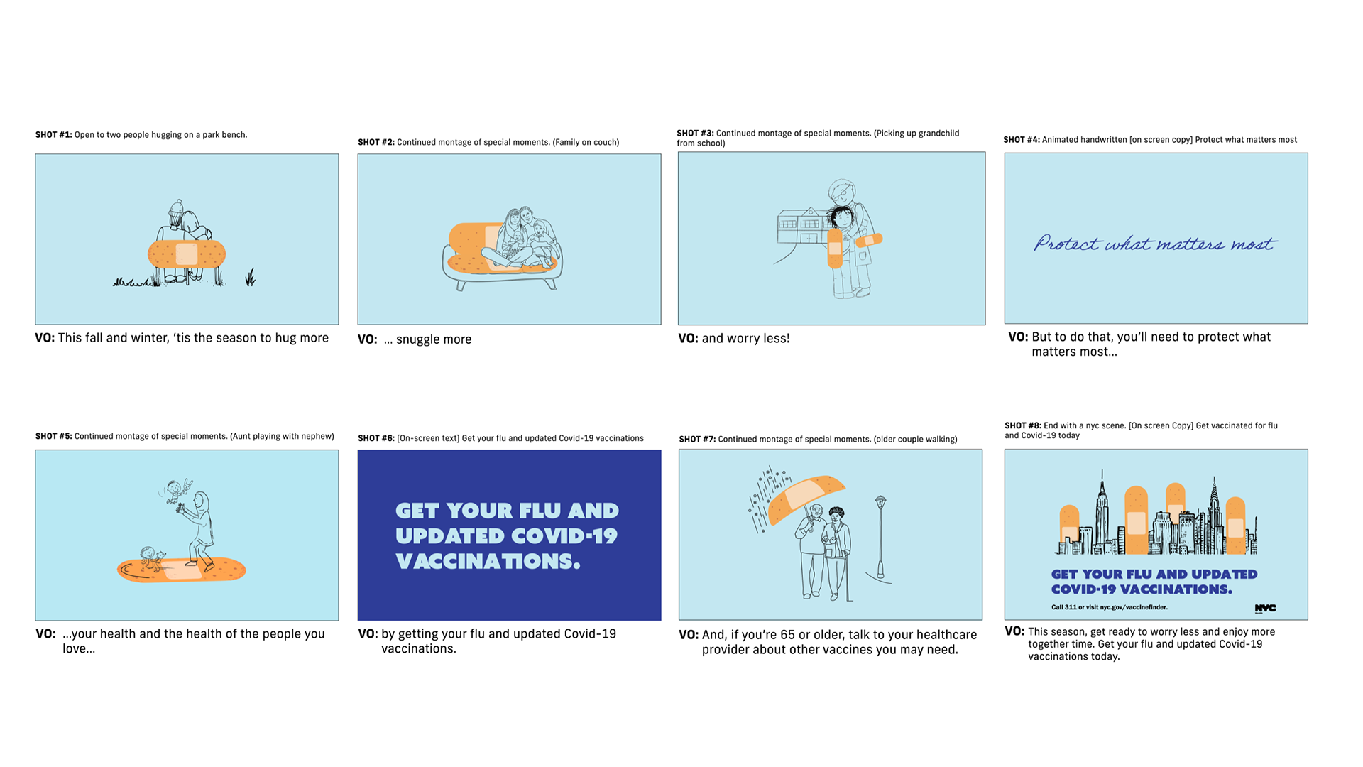 Remind New Yorkers of the advantages of getting vaccinated, and that upcoming closeness, through showing warm moments.